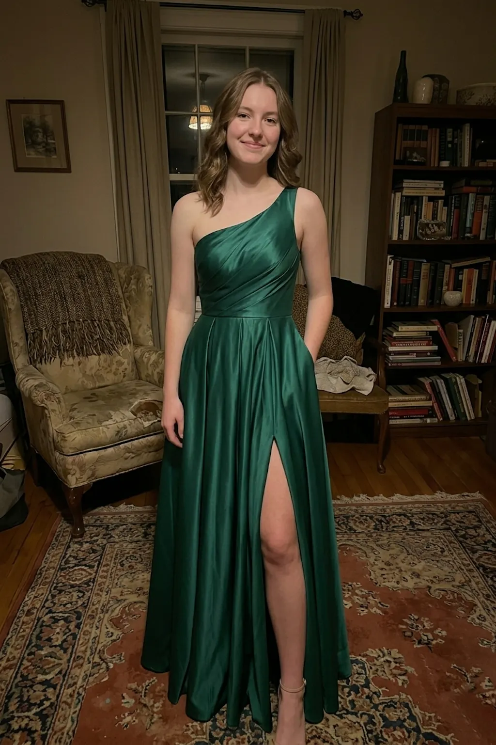 Make a bold entrance in this One-Shoulder Satin Long Fuchsia Prom Dress, designed for girls who love elegance with a modern twist. Crafted from luxurious satin, this floor-length A-line/Princess silhouette features a striking one-shoulder neckline, creating a chic and confident look for any formal occasion.