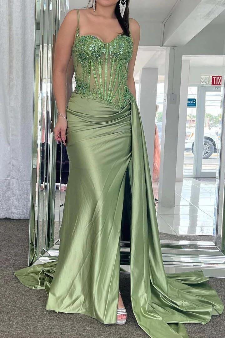 Dramatic Front Split: A carefully placed high slit adds a modern, confident edge to the gown, creating movement and a hint of allure.